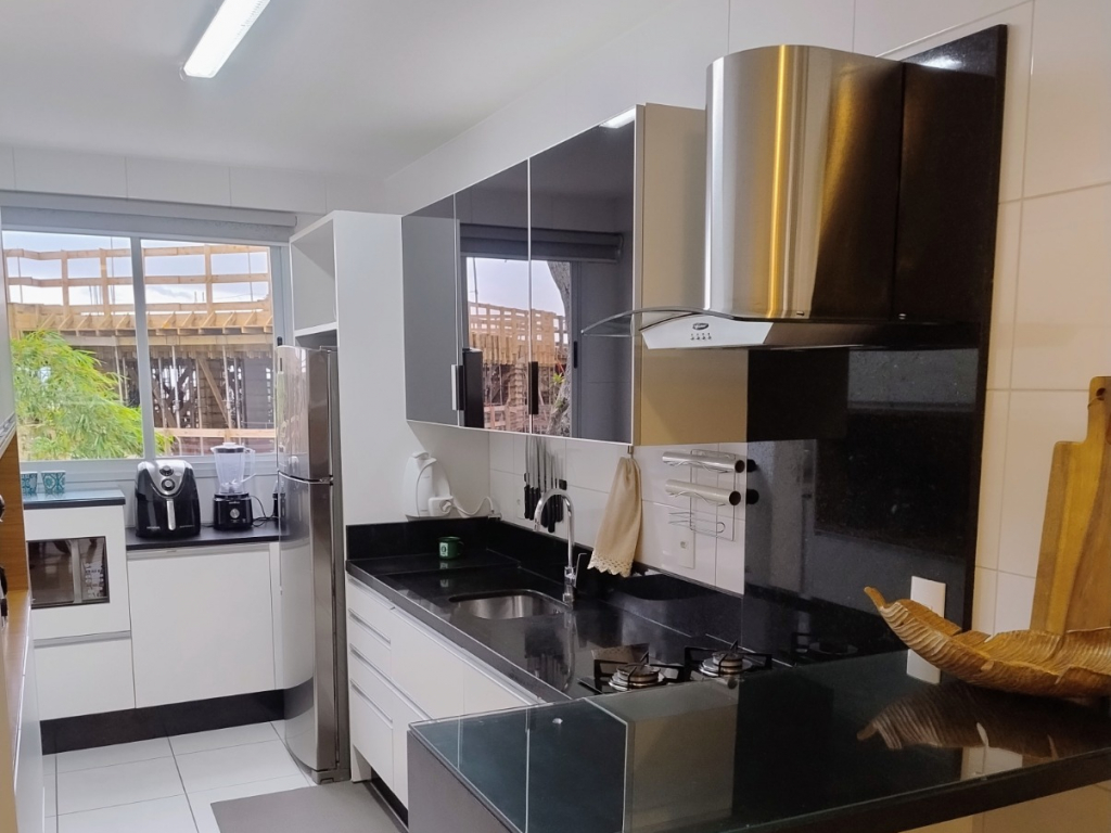 Cozinha já equipada com fogão, exausto, forno e geladeira